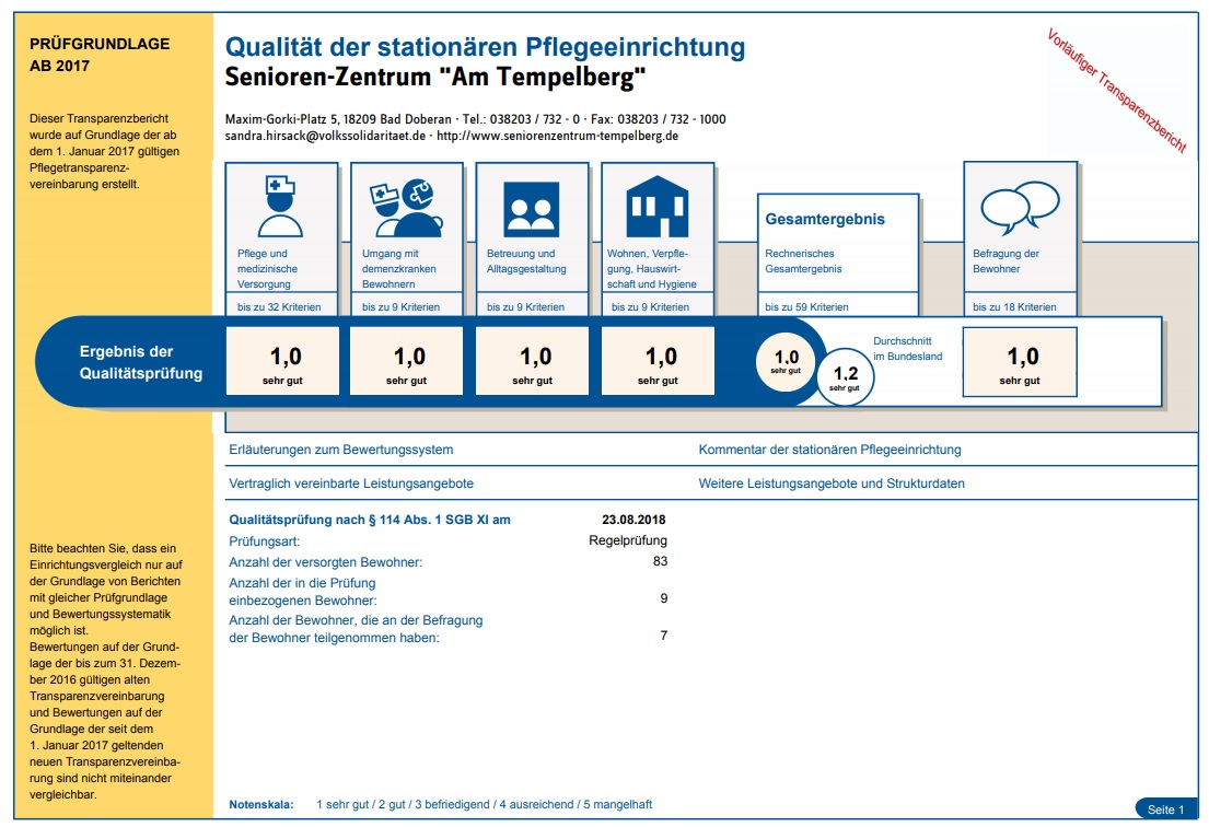 Hier ein Auszug aus dem aktuellen Prüfbericht.
